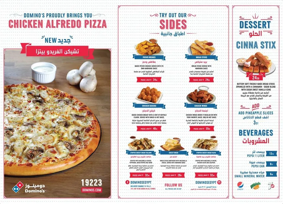 في المنيو الجديد الخاص بدومينيوز بيتزا تم إضافة بعض الأصناف الجديدة وسوف نتعرف على هذا المنيو الجديد خلال هذه السطور