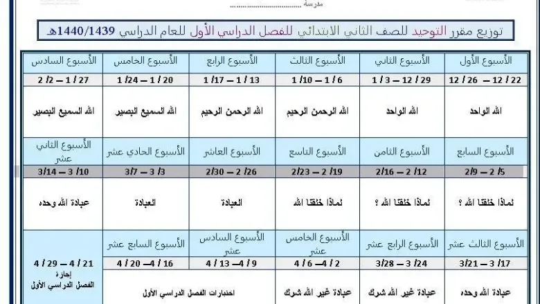 توزيع المنهج ١٤٤٣ الفصل الدراسي الثاني