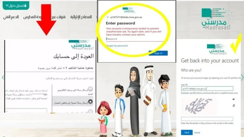 في حالة نسيان كلمة المرور لحساب منصة مدرستي، ولن يتمكن المستخدم من الوصول إلى المنصة واستخدام خدماتها. نتيجة لذلك، ويجب على المستخدم اتباع تعليمات المنصة لاسترجاع كلمة المرور على منصة مدرستي وهي كالتالي: