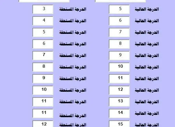 • والدرجة المؤهلة للترقية إلى المرتبة الثانية إلى الحالية الدرجة الثالثة عشرة: هي (10)