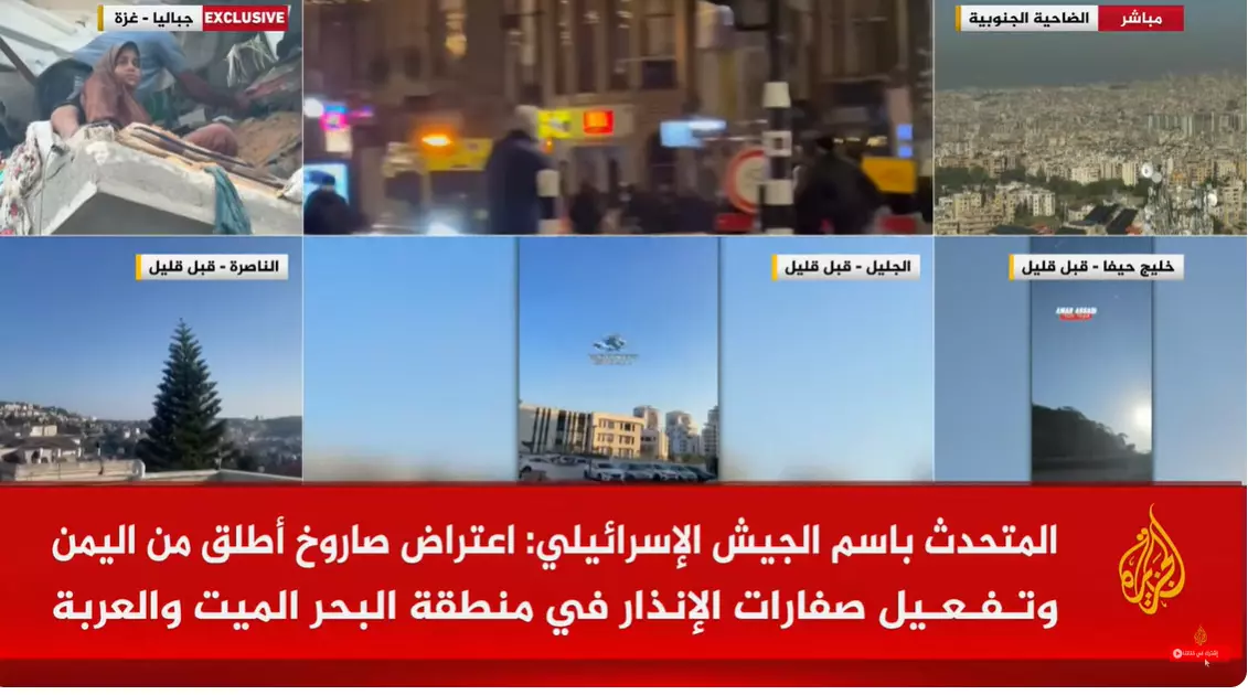 أعلن الجيش الإسرائيلي عن اعتراض صاروخ أُطلق من اليمن، بالإضافة إلى صواريخ أخرى انطلقت من الأراضي اللبنانية باتجاه جنوب إسرائيل.