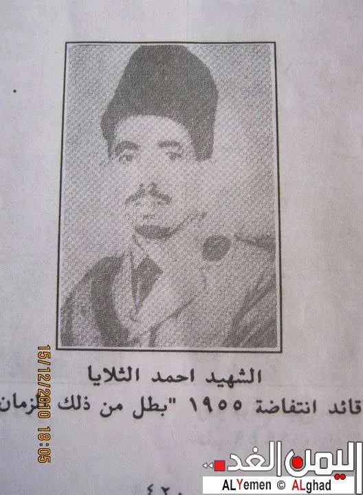 إن صاحب هذه الصورة المقدم أحمد الثلايا الذي أعدمه الامام احمد حميد الدين بعد حركة العسكر عليه في 56 وجعلوا منه ثائراً بطلا وشهيد ومن الحركة ثورة وبطوله.