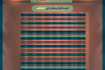 امساكية رمضان ١٤٤٣ الطائف امساكية رمضان 2022 في السعودية حيث نضع لكم…
