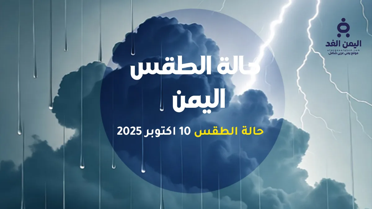 حالة الطقس اليوم 10 اكتوبر 2025 في اليمن حيث توقع المركز الوطني للأرصاد الجوية والإنذار المبكر في اليمن هطول أمطار رعدية متفاوتة الشدة خلال الساعات القادمة على عدد من المحافظات، محذرًا المواطنين والسائقين من مخاطر السيول والانهيارات الأرضية في المناطق الجبلية والوديان.