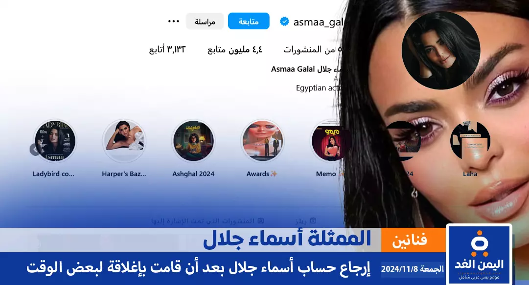 إغلاق حساب أسماء جلال على إنستجرام