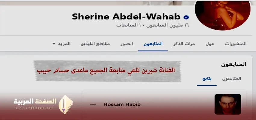 شيرين عبدالوهاب فيس بوك تلغي جميع من تتابعهم وتبقى على حسام حبيب