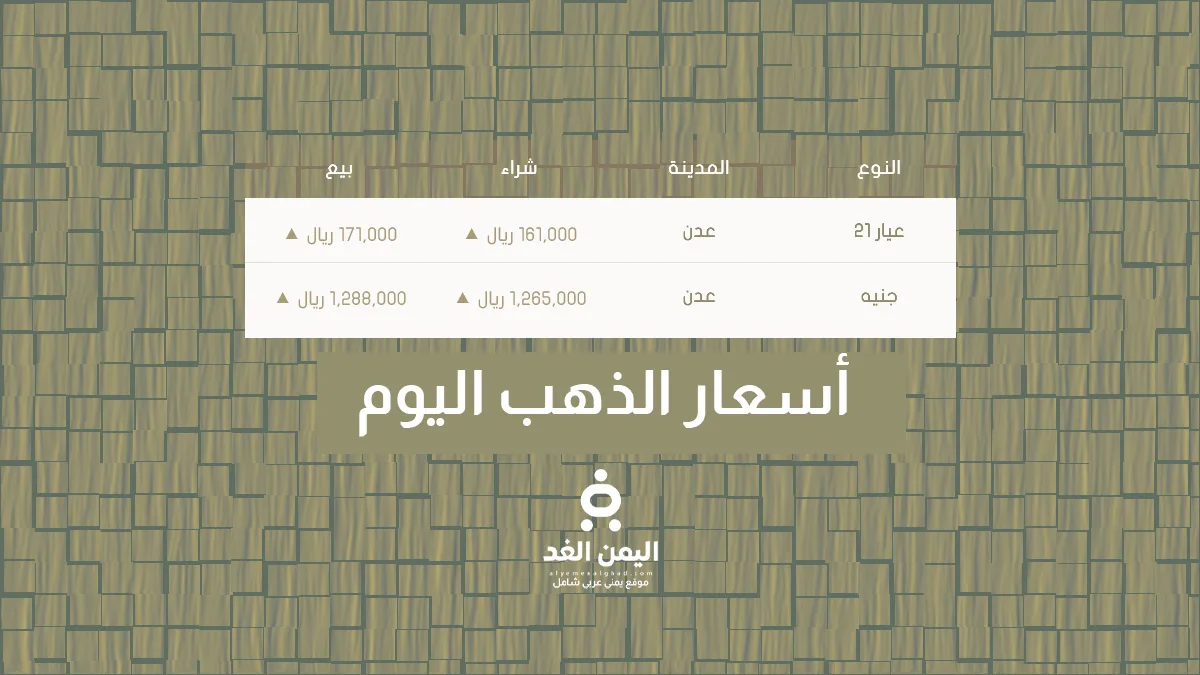| عيار 21 | عدن | ▲161,000 ريال | ▲171,000 ريال |