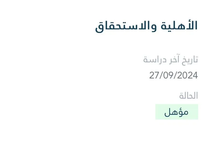 يجب تقديم الاعتراض خلال 90 يومًا من صدور نتيجة عدم الأهلية. وفي حال موافقة الاعتراض، تظهر حالة “دراسة الأهلية” مجددًا، ليتم إعادة التحقق من الأهلية بشكل دوري.