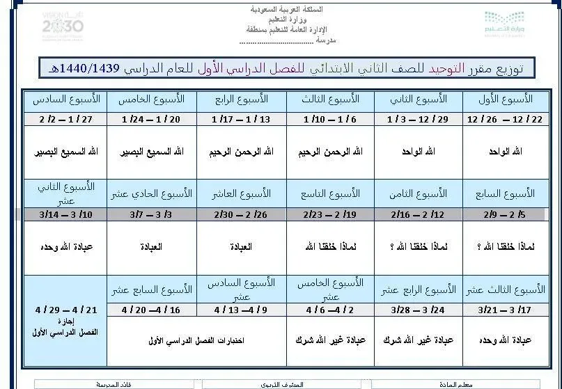 توزيع المنهج ١٤٤٣ الفصل الدراسي الثاني