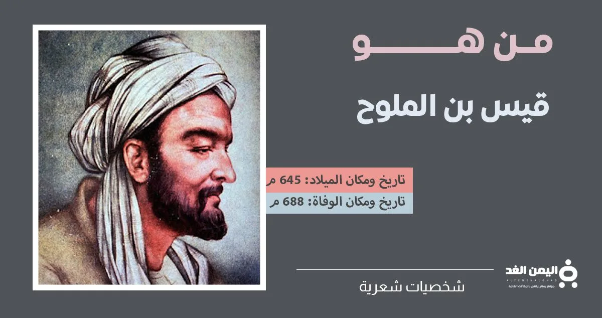 وُلد قيس بن الملوح في نجد وتوفي في حوالي سنة 688 ميلادية. لم يكن حبه لليلى مجرد علاقة عابرة، بل كانت قصة حب مأساوية تُروى على مر العصور، حيث منعته التقاليد الاجتماعية من الزواج بحبيبته ليلى، مما جعله يُصاب بحالة من الجنون العاطفي والانزواء في البراري، مستغرقًا في الشعر والتذكر.