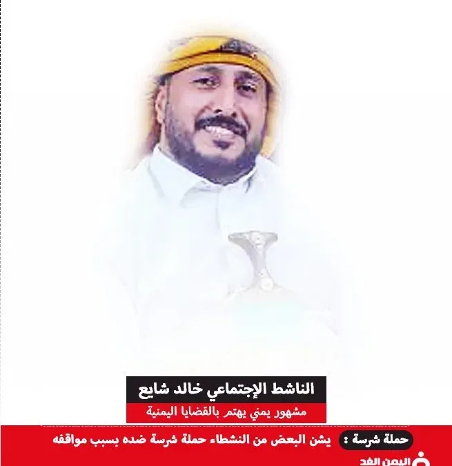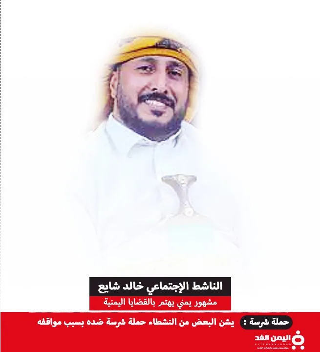 خالد شايع ناشط إجتماعي يمني شاب كسب شهرة واسعة عبر منصات التواصل الإجتماعي فيس بوك وذلك من خلال مشاركاته الفاعله حول القضايا التي تهتم بالمغترب اليمني.