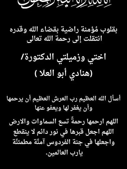 في خبر محزن وفاة هنادي ابو العلا الدكتورة السعودية