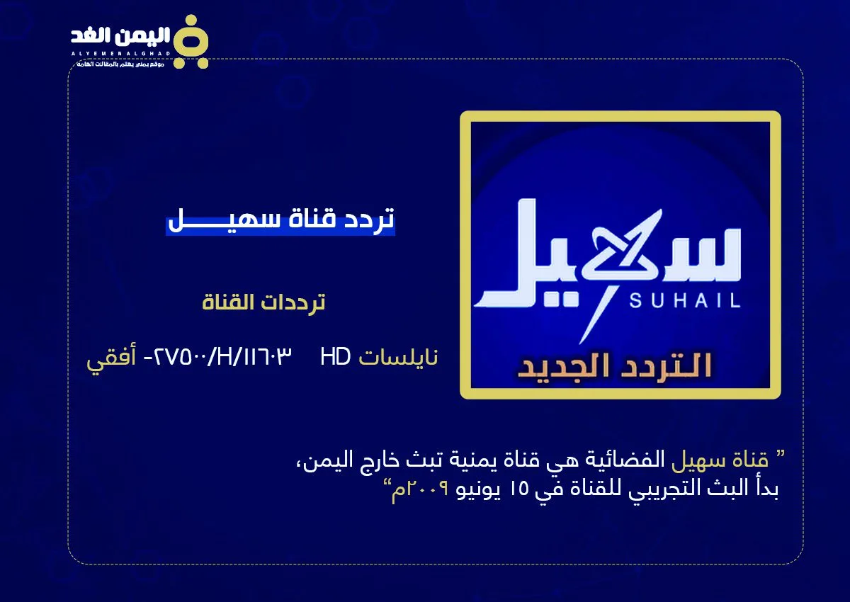 قناة سهيل الفضائية هي قناة يمنية تبث خارج اليمن، بدأ البث التجريبي للقناة في 15 يونيو 2009م وبدأ البث الرسمي للقناة في 2010/01/10م توقف بث القناة من الكويت لأسباب سياسية وضغوطات من حكومة علي عبد الله صالح، فعاودت القناة بثها من بريطانيا من جديد في 2009/08/26م. ويكيبيديا