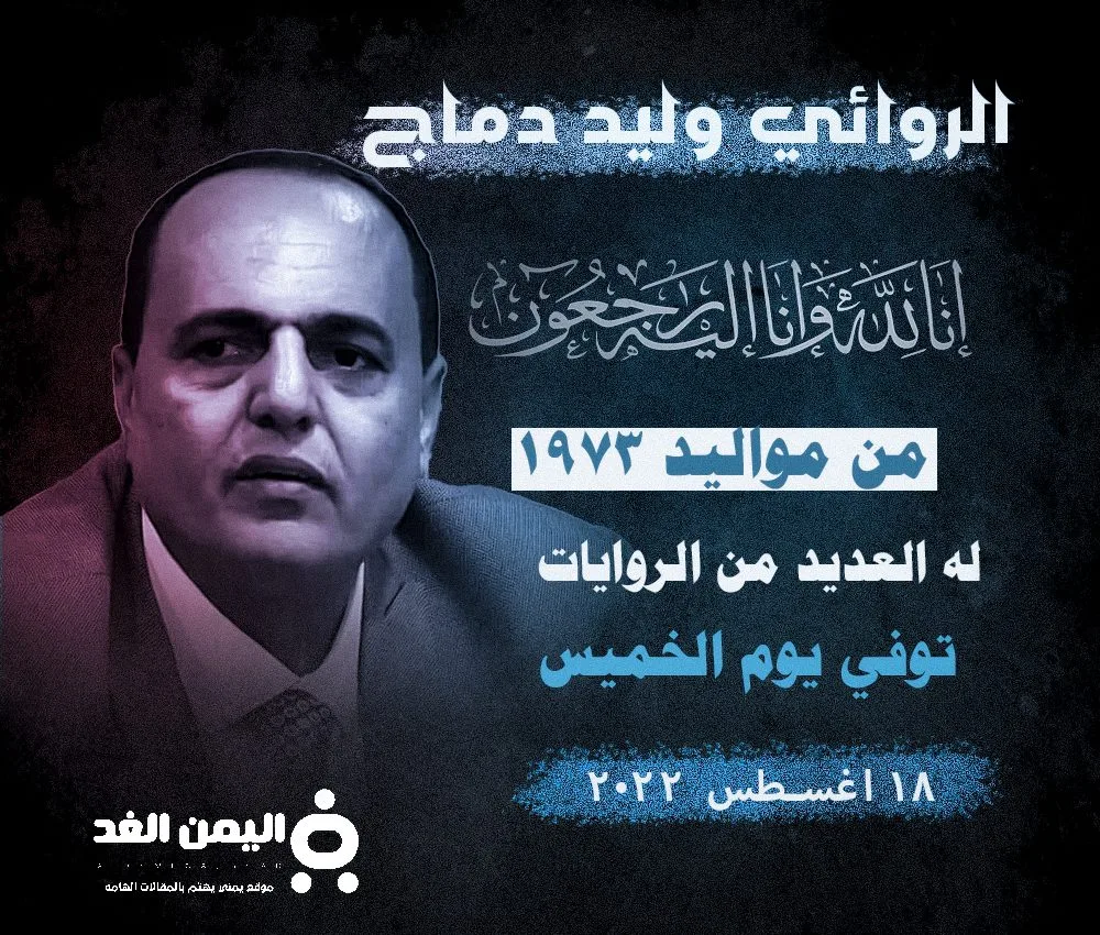 ونعى الكثيرون من رواد مواقع التواصل الإجتماعي من كتاب وروائيين ونشطاء بعد الإعلان عن وفاة الروائي الكبير وليد دماج بأزمة قلبية مفاجأة ألمت به.