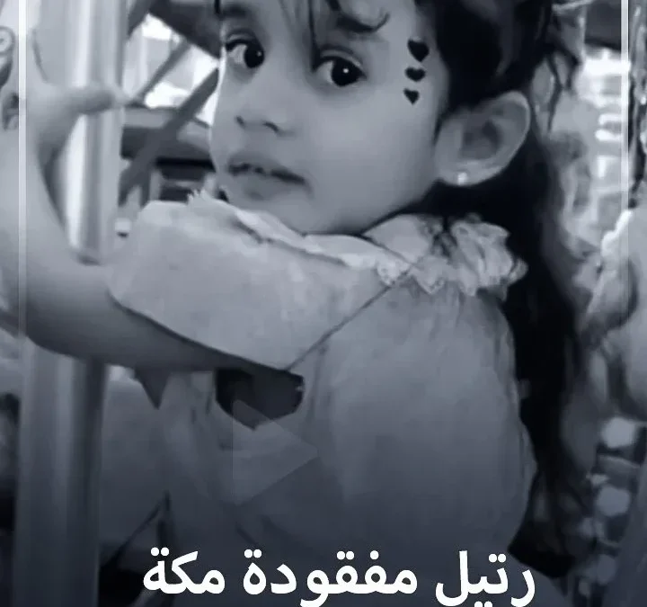 مناشدة من أسرة الطفلة رتيل مفقودة مكة التي ضاعت يوم امس اثناء تواجدهم في إحدى المماشيء وكانت تلعب وتلهو ومن ثم لم تجد الأم الطفلة التي فَقدتها , وطالبت الجميع مساعدتها في إيجاد إبنتها.