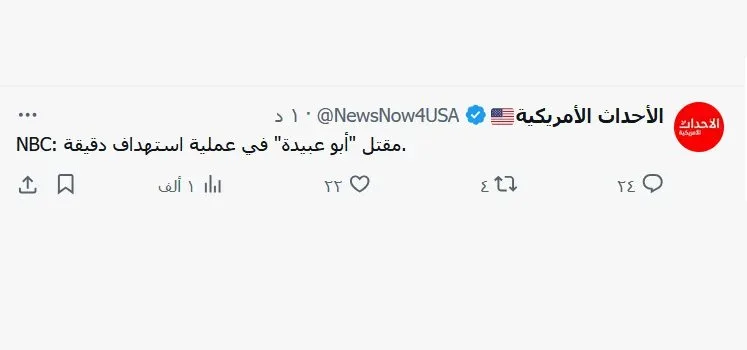 لا اخبارتؤكد ماتم زعمه من أخبار من قبل تلك الصفحة والصفحات الأخرى التي قامت بنشر تلك التغريدة, وتدالها العديد من النشطاء, وفي الحقيقة لا صحة لتلك الأخبار والشائعات التي تم نشرها بخصوص إغتيال ابو عبيدة.