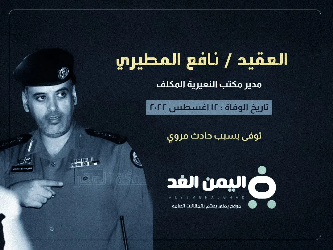 وفاة العقيد نافع المطيري يوم الجمعة الموافق 12-8-2022 الموافق هجرية 14-1-1444 هجرية في شهر محرم وسوف نتعرف من خلال موقعنا اليمن الغد حول ما هو سبب وفاة العقيد نافع المطيري الذي نعاه الكثيرون من نشطاء مواقع السوشيال ميديا تويتر وكذلك فيس بوك .