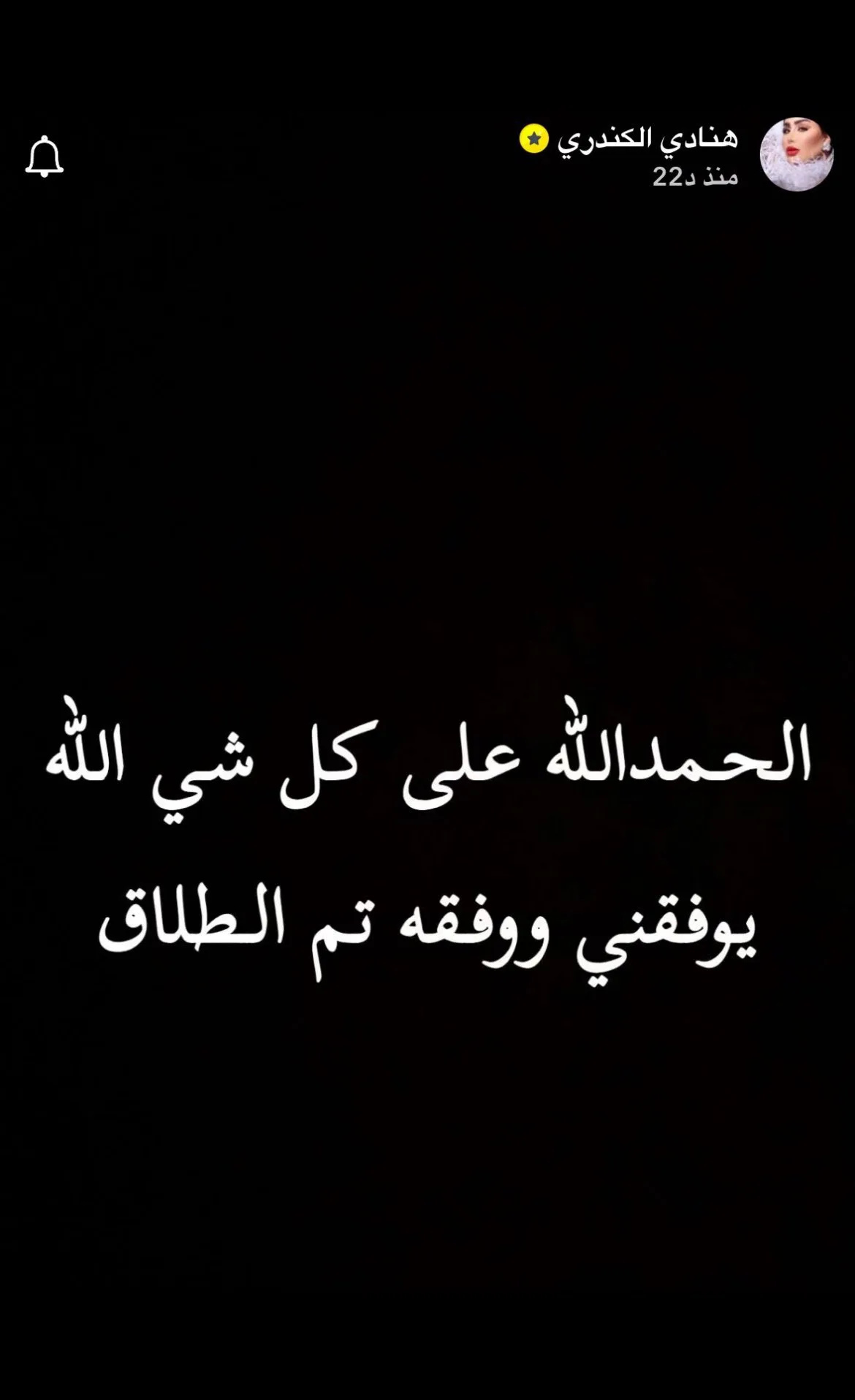 “الحمدلله على كل شيء، يوفقني ويوفقه، تم الطلاق”.